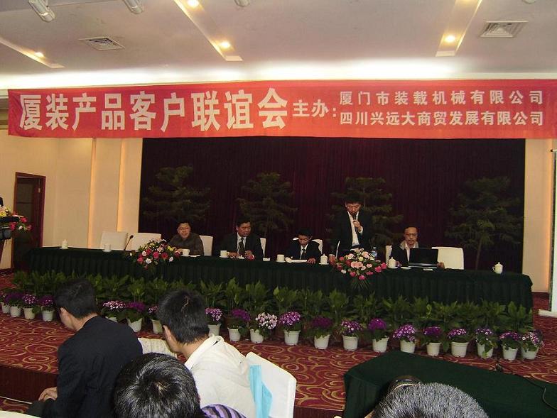 2009年3月21日上午,廈門(mén)市裝載機(jī)有限公司及四川興遠(yuǎn)大商貿(mào)發(fā)展有限公司共同舉辦的“廈裝機(jī)械客戶(hù)聯(lián)誼會(huì)”在什邡市長(zhǎng)江賓館舉行。廈門(mén)市裝載機(jī)有限公司副總經(jīng)理王曉忠、技術(shù)中心副主任王理和什邡市工商聯(lián)主席鄧家宜出席會(huì)議。