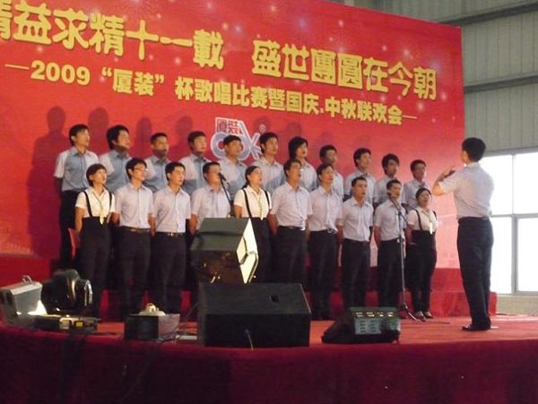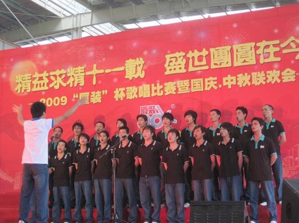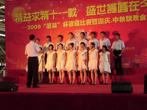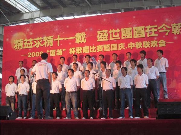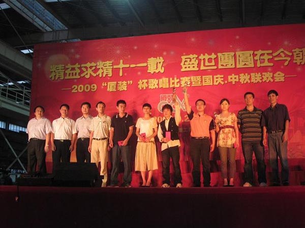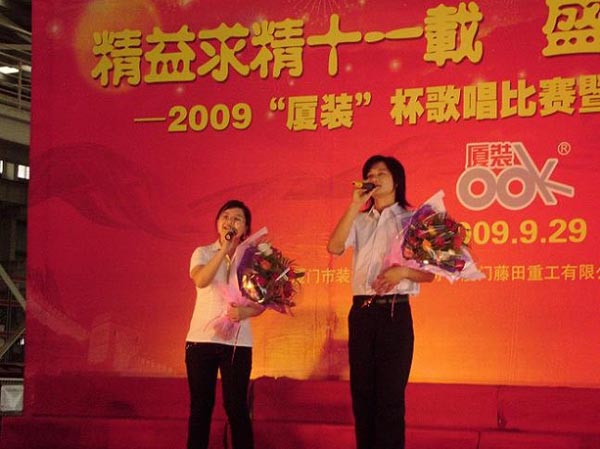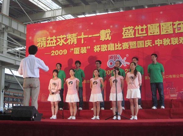 9月29日下午,2009年度“廈裝杯”歌唱比賽在廈裝公司總裝車間舉行。此次歌唱比賽以“精益求精十一載、盛世團(tuán)圓在今朝”為主題,賀祖國(guó)60周年華誕、喜迎中秋、慶祝廈裝成立11周年。公司及各部門從6月份開始籌備此次比賽,此次比賽分為集體組和個(gè)人組,集體組(合唱)以部門為單位,最終有6支隊(duì)進(jìn)入當(dāng)天的決賽,個(gè)人組通過(guò)先前的部門推薦及預(yù)賽選拔,最終有11人闖入決賽。