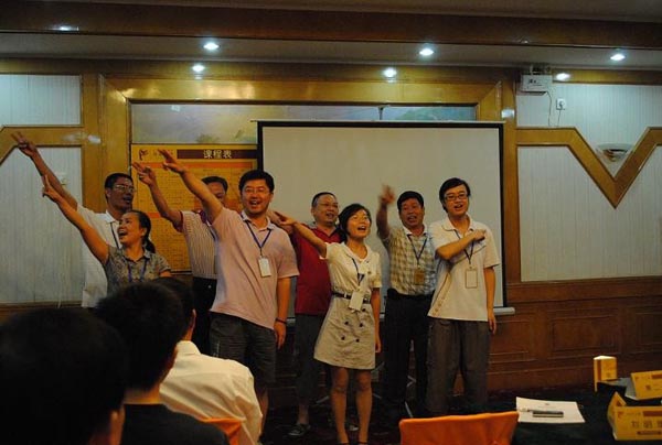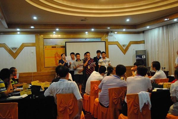 活動(dòng)為期兩天,由“廈裝”公司中高層管理人員及大界公司講師、輔導(dǎo)員共27人參加,培訓(xùn)活動(dòng)在大界公司講師的主持下氣氛異常的熱烈,“廈裝”公司及各控股子公司各級(jí)管理人員帶著“團(tuán)結(jié)互助,開(kāi)拓進(jìn)取”的思想而來(lái),對(duì)課程要求很快就熟悉起來(lái),并按照培訓(xùn)的要求進(jìn)行分組、選隊(duì)長(zhǎng)、創(chuàng)造隊(duì)歌及隊(duì)手勢(shì)等有趣的活動(dòng)。