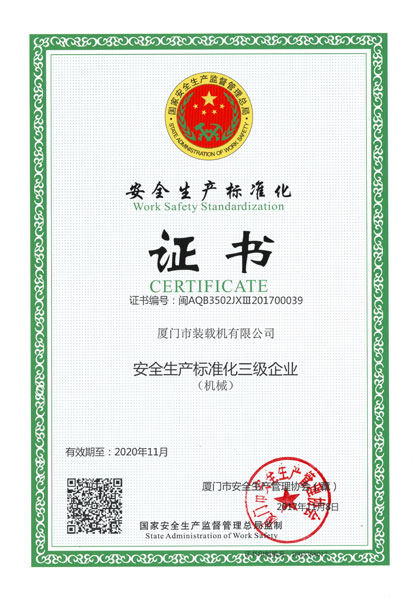 廈裝安全三級(jí)標(biāo)準(zhǔn)化證書
